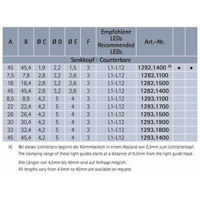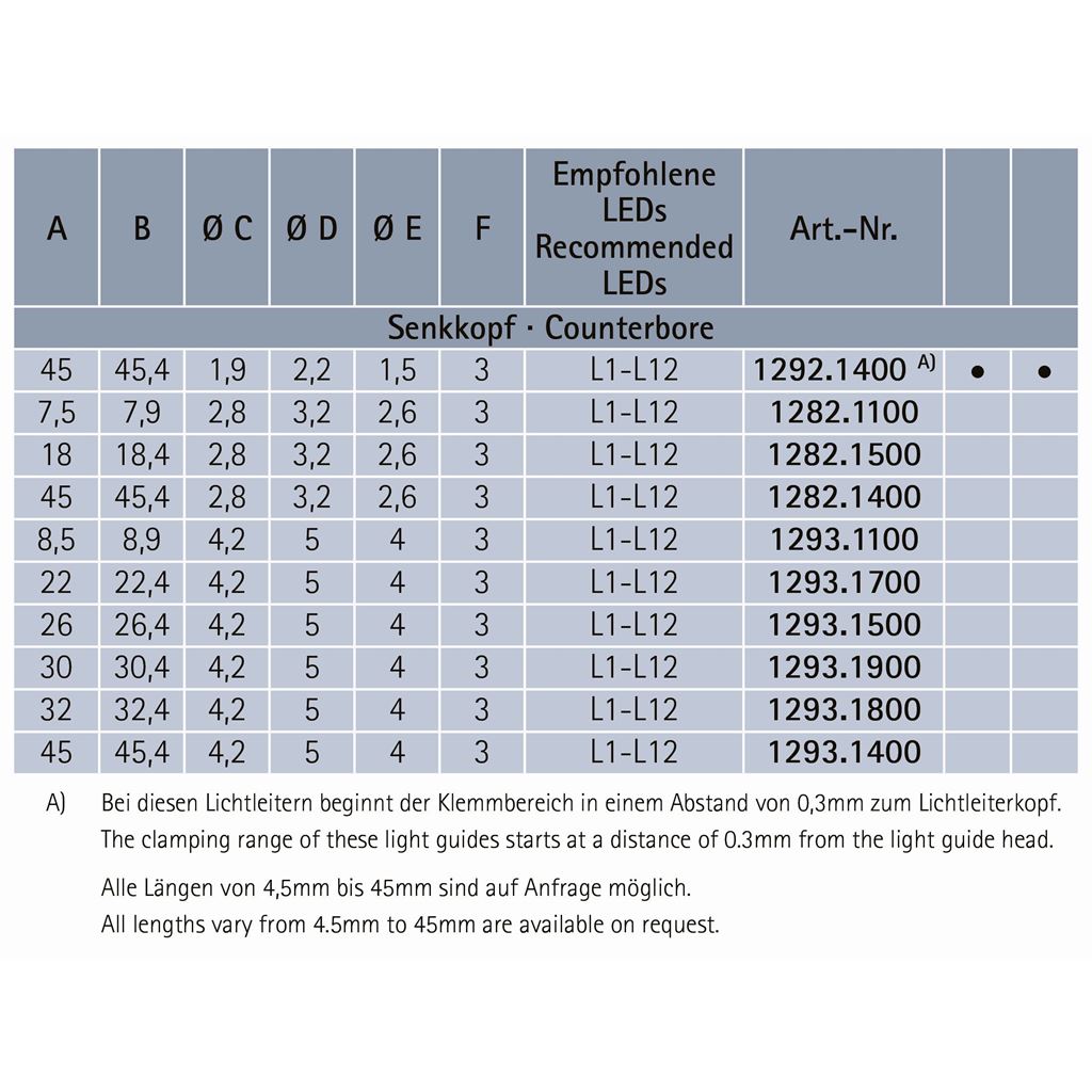 | Variable Länge | Schaftlänge 4,5-45mm |
