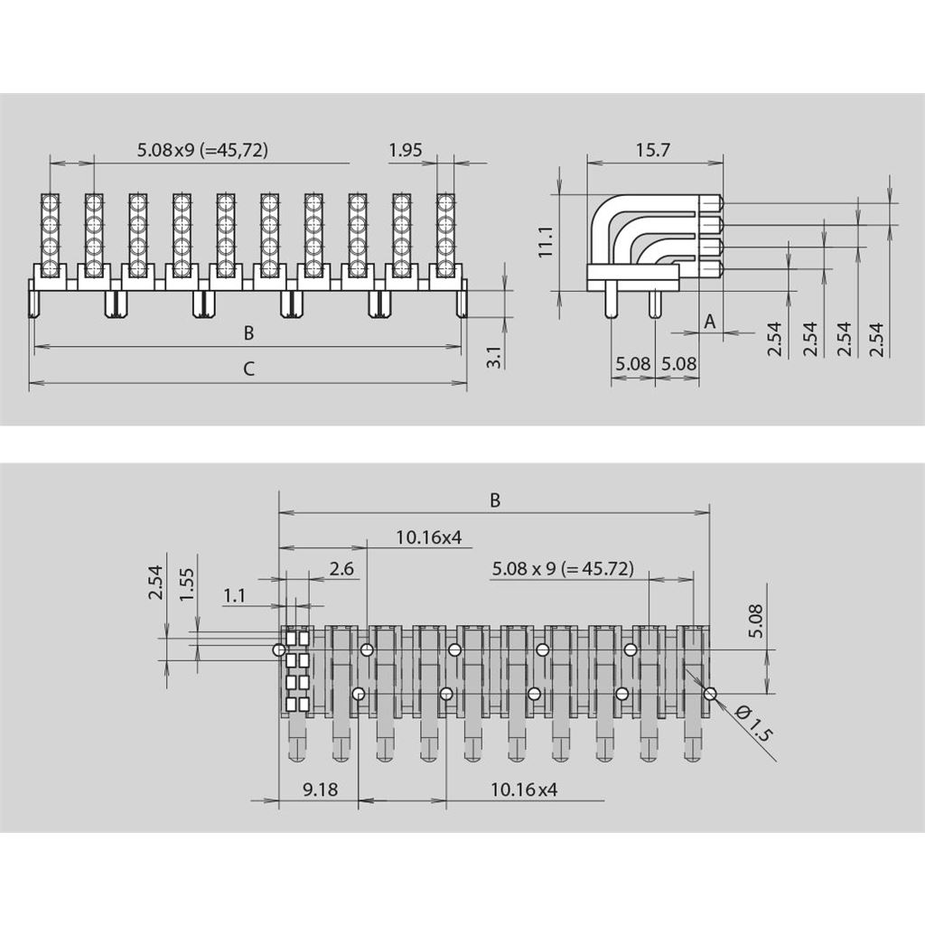 | Rastermaß | 2,54x5,08 |